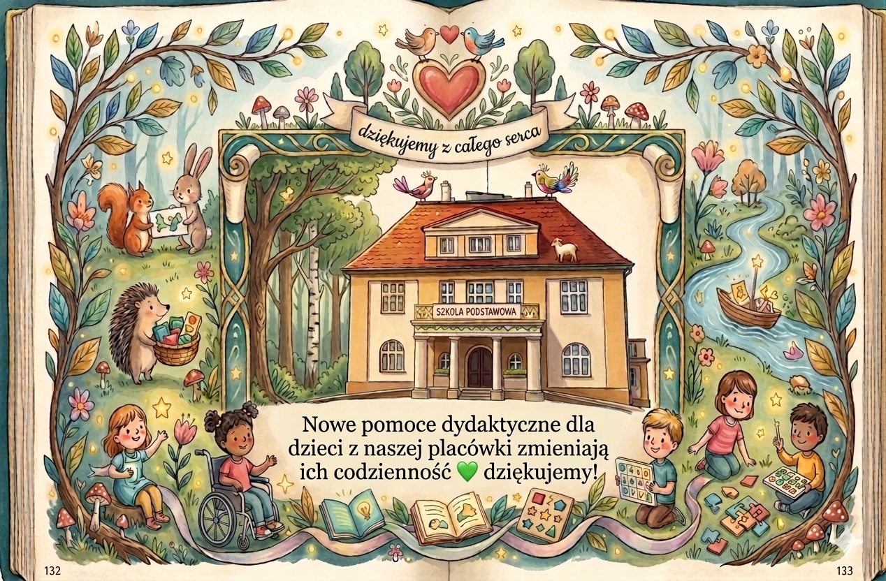 została w całości przeznaczona na zakup nowoczesnych pomocy edukacyjnych dla dzieci z naszej placówki. Nowe materiały dydaktyczne już służą naszym uczniom i przedszkolakom, pomagając im każdego dnia odkrywać świat i rozwijać swoje talenty.
