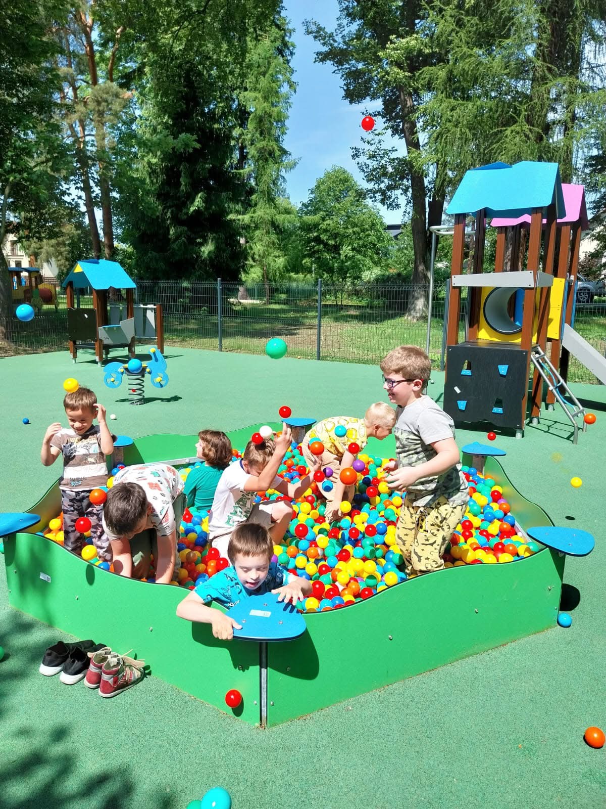 Szkoła wyposażona jest w nowoczesny, specjalistyczny sprzęt dydaktyczny i terapeutyczny, który wspiera rozwój i edukację naszych uczniów. Do dyspozycji jest również ogród z dużym placem zabaw, sala z łóżkiem wodnym, sala ceramiczna oraz sala sensoryczna. Takie otoczenie tworzy warunki do stymulacji zmysłów, odpoczynku i rozwijania umiejętności poznawczych.